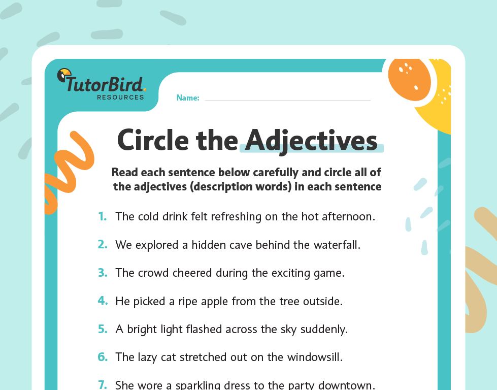 Read each sentence carefully and circle all of the adjectives (description words) in each sentence.