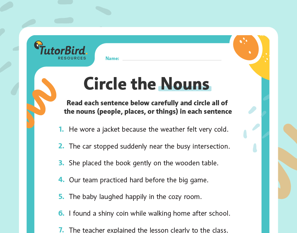 Read each sentence carefully and circle all of the nouns (people, places, or things) in each sentence.
