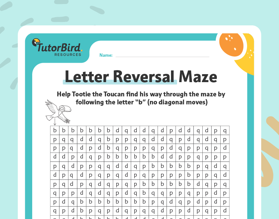Help Tootie the Toucan find his way through the maze by following the letter "b".
